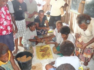 During the training woman learn how to make the clay stove, that reduces firewood use and time for collecting firewood. Compared to the usual cooking on an open fire, as practiced across Solomon Islands, cooking with the clay stove it is quicker for food to be cooked. This also saves womens time – in collecting and carrying firewood and in time spent cooking.